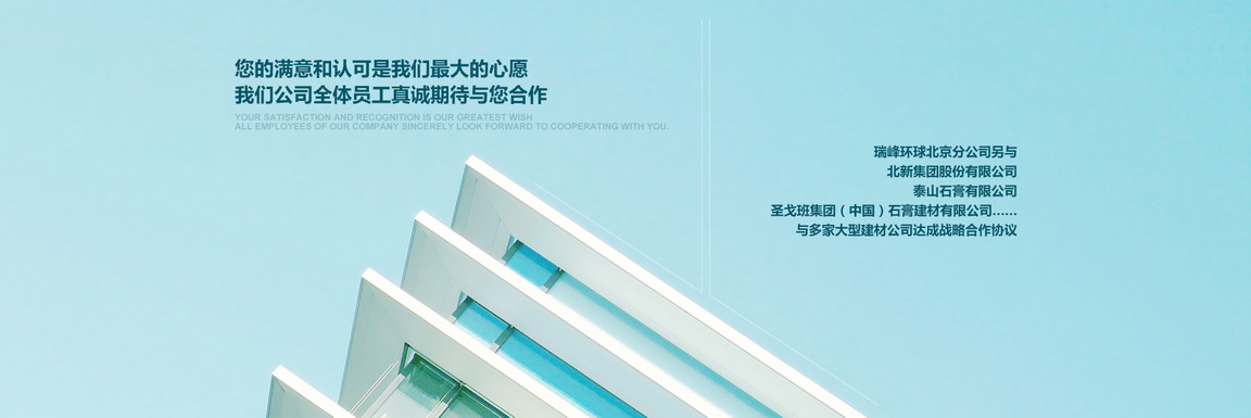 北京市朝陽區(qū)金盞鄉(xiāng)科鷹科技園內,是北京******的建材營銷商之一,專業(yè)銷售各種高檔建筑材料的現(xiàn)代化公司.本公司已與多家大型建材廠家達成合作協(xié)議:泰山石膏建材有限公司,北新建材有限公司,濱州綠邦有限公司,河北金秋有限公司,北京金隅砂漿有限公司,歐文斯科寧(中國)投資有限公司,湯姆節(jié)能建材(北京)有限公司等.更與國外泰國工廠生產(chǎn)的:美巖板,清水板,木絲水泥板,木紋木絲板……簽訂了國內經(jīng)營權;與德國高新企業(yè)超薄石材簽屬超薄巖板國內代理權(超薄巖板,可彎曲石材,厚度1.5~2mm左右)與臺灣合作研發(fā)礦石板(以最好的效果提現(xiàn)礦石的效果).好的工程絕對少不了一個好的建筑材料,瑞峰環(huán)球攜手各大品牌為您的工程保駕護航.